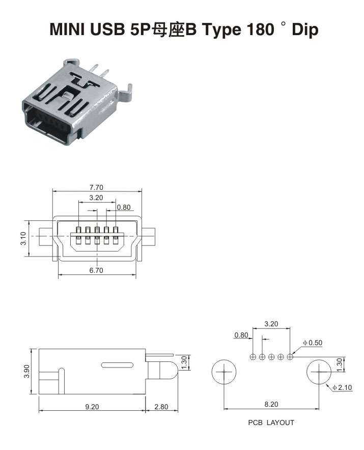 MIMI USB 5P母座 B Type 180°Dip