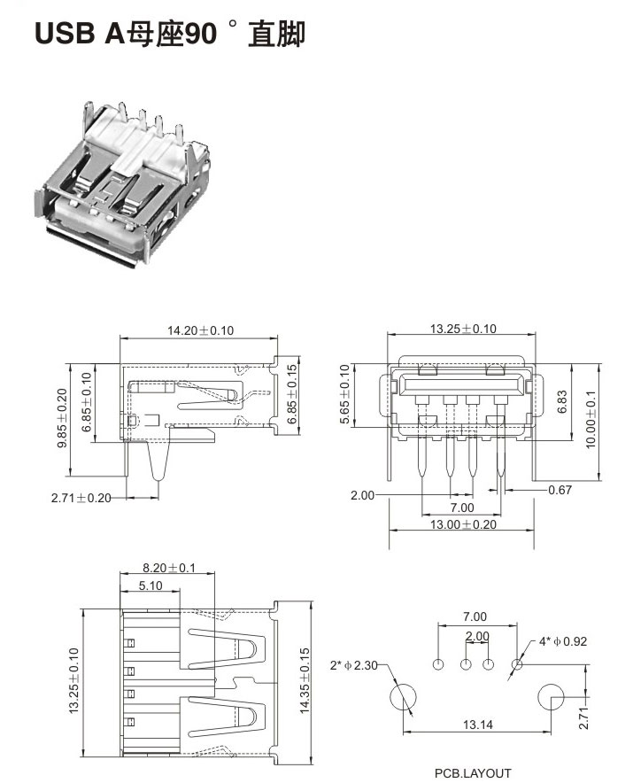 USB A母座90° 直腳