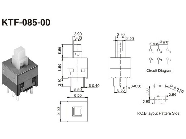 無鎖開關(guān)/自鎖開關(guān)KTF-085-00.產(chǎn)品廣泛用于收音機、玩具、電話、電視機、MP3、等電腦通訊器材、及家用電器等設(shè)備。