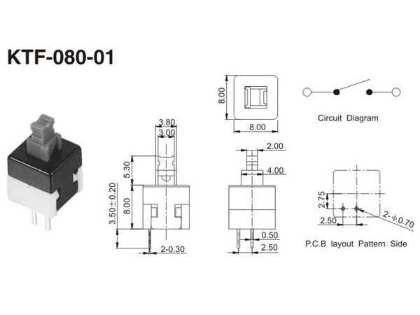 小撥動開關KTF-080-01.產品廣泛用于收音機、玩具、電話、電視機、MP3、等電腦通訊器材、及家用電器等設備。