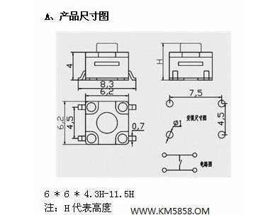 詳細介紹: 防水輕觸開關KM66貼片 本產品廣泛用于,玩具,電動玩具,玩具公仔,防盜器,家用電器,手機數碼,電子通訊,電子游戲機,汽車防盜,智能化系統,電視機、MP3、耳機,等電腦通訊器材